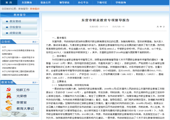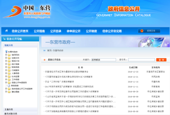 2016年,東營(yíng)市政府系統(tǒng)深入貫徹《條例》和《辦法》,按照國(guó)務(wù)院、省政府統(tǒng)一部署,全面落實(shí)《中共中央辦公廳國(guó)務(wù)院辦公廳關(guān)于全面推進(jìn)政務(wù)公開工作的意見》(中辦發(fā)〔2016〕8號(hào))、《國(guó)務(wù)院辦公廳關(guān)于印發(fā)2016年政務(wù)公開工作要點(diǎn)的通知》(國(guó)辦發(fā)〔2016〕19號(hào))和《省委辦公廳、省政府辦公廳印發(fā)<關(guān)于全面推進(jìn)政務(wù)公開工作的實(shí)施意見>》(魯辦發(fā)〔2016〕43號(hào))、《山東省人民政府辦公廳關(guān)于印發(fā)2016年山東省政務(wù)公開工作要點(diǎn)的通知》(魯政辦發(fā)〔2016〕23號(hào))要求,不斷加強(qiáng)組織領(lǐng)導(dǎo),加大推進(jìn)力度,全市政務(wù)公開工作進(jìn)一步深化,公開實(shí)效明顯提升。市政府門戶網(wǎng)站的“政府網(wǎng)站日常監(jiān)測(cè)欄目”被中國(guó)電子政務(wù)理事會(huì)和《電子政務(wù)》雜志社授予“2016年政府網(wǎng)站大數(shù)據(jù)應(yīng)用獎(jiǎng)”。