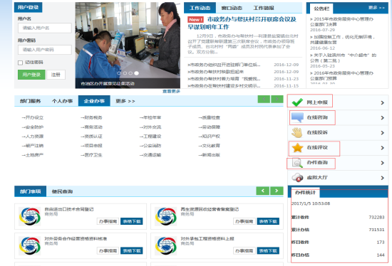 四是積極推進(jìn)“互聯(lián)網(wǎng)+政務(wù)服務(wù)”。根據(jù)全省政務(wù)服務(wù)平臺(tái)互聯(lián)互通建設(shè)的部署要求,積極推進(jìn)行政許可等權(quán)力事項(xiàng)網(wǎng)上辦理,壓茬推進(jìn),精準(zhǔn)和即時(shí)審查市、縣行政許可事項(xiàng)基本信息,全部完成市縣兩級(jí)1450項(xiàng)(主項(xiàng))行政許可事項(xiàng)要素梳理和內(nèi)容數(shù)據(jù)錄入、審核工作。目前,政務(wù)服務(wù)網(wǎng)已正式運(yùn)行,實(shí)現(xiàn)了全市主要行政權(quán)力“一張網(wǎng)”運(yùn)行和企業(yè)、群眾辦事“一網(wǎng)通”。五是建立部門清單公示同步調(diào)整機(jī)制。2016年2月,下發(fā)了《關(guān)于做好我市行政審批事項(xiàng)目錄和權(quán)責(zé)清單動(dòng)態(tài)管理工作有關(guān)事宜的通知》(東編辦發(fā)〔2016〕17號(hào)),要求各部門、各縣區(qū)按照《山東省行政權(quán)力清單動(dòng)態(tài)管理辦法》要求,根據(jù)法律法規(guī)調(diào)整情況和取消下放工作進(jìn)展,適時(shí)集中梳理部門單位行政審批事項(xiàng)目錄和權(quán)責(zé)清單,建立健全動(dòng)態(tài)管理機(jī)制,做到部門相關(guān)清單同步調(diào)整、同步公示。
