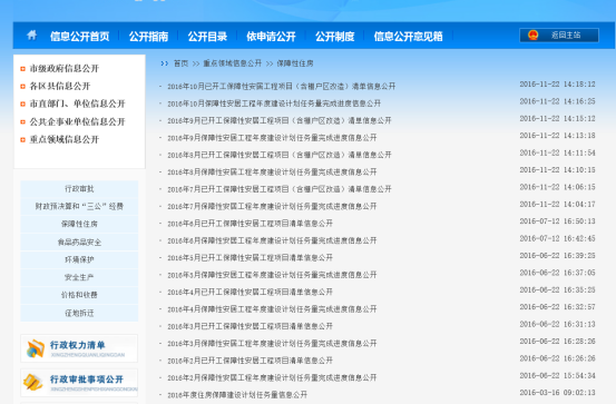 10、推進(jìn)棚戶區(qū)改造、農(nóng)村危房改造和保障性住房信息公開。2016年,全市計(jì)劃開工建設(shè)保障性住房和棚戶區(qū)改造安置房6534套;計(jì)劃基本建成保障性住房和棚戶區(qū)改造住房5796套;計(jì)劃新增發(fā)放廉租住房租賃補(bǔ)貼130戶,已按要求分別在市政府信息公開網(wǎng)站、市建設(shè)信息網(wǎng)、市報(bào)社等相關(guān)媒體進(jìn)行了全面公開。通過市政府門戶網(wǎng)站和市建設(shè)信息網(wǎng)及時(shí)公開了《東營(yíng)市人民政府辦公室關(guān)于公布東營(yíng)市中心城2016年度住房保障有關(guān)政策標(biāo)準(zhǔn)的通知》(東政辦字〔2016〕54號(hào))、《關(guān)于認(rèn)真組織做好2016年度市直公共租賃住房申報(bào)審核及復(fù)核工作的通知》(東建字﹝2016﹞217號(hào))等政策文件和項(xiàng)目進(jìn)展情況。截至2016年底,全市開工建設(shè)各類保障性住房6868套(戶),開工任務(wù)完成率為105.1%?;窘ǔ杀U闲宰》亢团飸魠^(qū)改造住房共7171套。基本建成任務(wù)完成率為123.7%。市新增廉租住房貨幣補(bǔ)貼191戶,完成租賃補(bǔ)貼任務(wù)的146.9%。