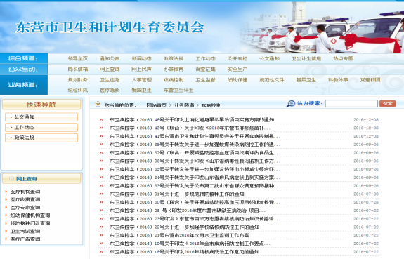 二是深化醫(yī)療衛(wèi)生領(lǐng)域信息公開。健全各類醫(yī)療機(jī)構(gòu)信息公開內(nèi)容,加強(qiáng)醫(yī)療衛(wèi)生領(lǐng)域醫(yī)療服務(wù)收費(fèi)信息公開,市衛(wèi)生計(jì)生委設(shè)立了“市醫(yī)療收費(fèi)查詢”專欄,公開了各類醫(yī)療機(jī)構(gòu)信息440余條,醫(yī)療服務(wù)價(jià)格收費(fèi)信息4660余條。全面落實(shí)傳染病綜合防治措施,不斷加強(qiáng)疾病防控體系建設(shè),2016年全市甲乙類法定傳染病報(bào)告發(fā)病率為172.32/10萬,艾滋病、結(jié)核病、手足口病等重點(diǎn)傳染病疫情平穩(wěn),未發(fā)生甲類傳染病病例和突發(fā)公共衛(wèi)生事件。穩(wěn)妥做好非法經(jīng)營(yíng)疫苗案件處置工作,開展預(yù)防接種規(guī)范化專項(xiàng)行動(dòng),全市免疫規(guī)劃疫苗接種率達(dá)到97%;會(huì)同發(fā)改、財(cái)政等部門印發(fā)《關(guān)于加強(qiáng)疾病預(yù)防控制中心實(shí)驗(yàn)室建設(shè)意見》、《東營(yíng)市縣級(jí)疾病預(yù)防控制中心實(shí)驗(yàn)室裝備項(xiàng)目實(shí)施方案》,啟動(dòng)縣級(jí)疾控機(jī)構(gòu)實(shí)驗(yàn)室裝備項(xiàng)目,市疾控中心投資700萬元加強(qiáng)實(shí)驗(yàn)室裝備;會(huì)同市編辦出臺(tái)《東營(yíng)市各級(jí)疾病預(yù)防控制中心機(jī)構(gòu)編制標(biāo)準(zhǔn)實(shí)施意見》,明確人員配備比例。