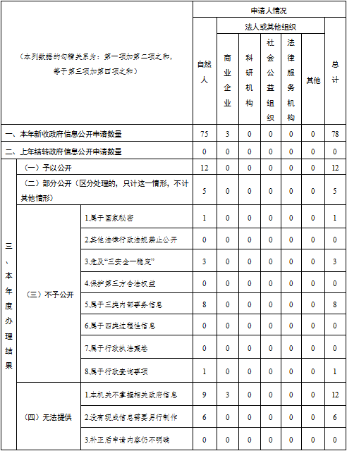 三、收到和處理政府信息公開申請情況統計表